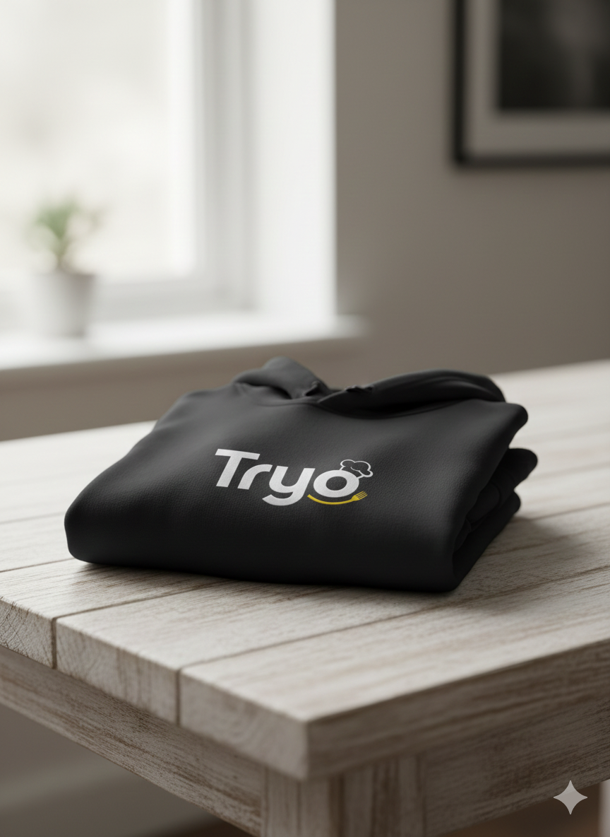The Tryo Branded T-Shirt features our signature handwritten logo with a sleek burger icon — designed for food lovers who live for bold, smoky flavours. Made with ultra-soft, breathable cotton, it’s perfect for truck staff, fans, and anyone who loves modern streetwear.